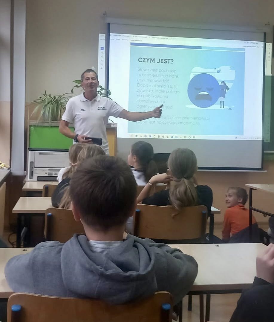 - prelekcja na temat zjawiska hejtu. Spotkanie poprowadził Jerzy Janowicz, komendant Straży Miejskiej w Szczawnicy. Podczas wystąpienia uczniowie dowiedzieli się, czym jest hejt, jakie może mieć skutki, jakie niesie konsekwencje prawne oraz jakie cechy charakteryzują hejtera. Komendant omówił również sposoby radzenia sobie z hejtem i podkreślił, że w Internecie nikt nie jest anonimowy, gdyż każde urządzenie ma swój indywidualny kod, co pozwala na jego identyfikację. Uczniowie aktywnie uczestniczyli w spotkaniu i chętnie zadawali pytania. Na zakończenie podziękowali prowadzącemu za cenne wskazówki.