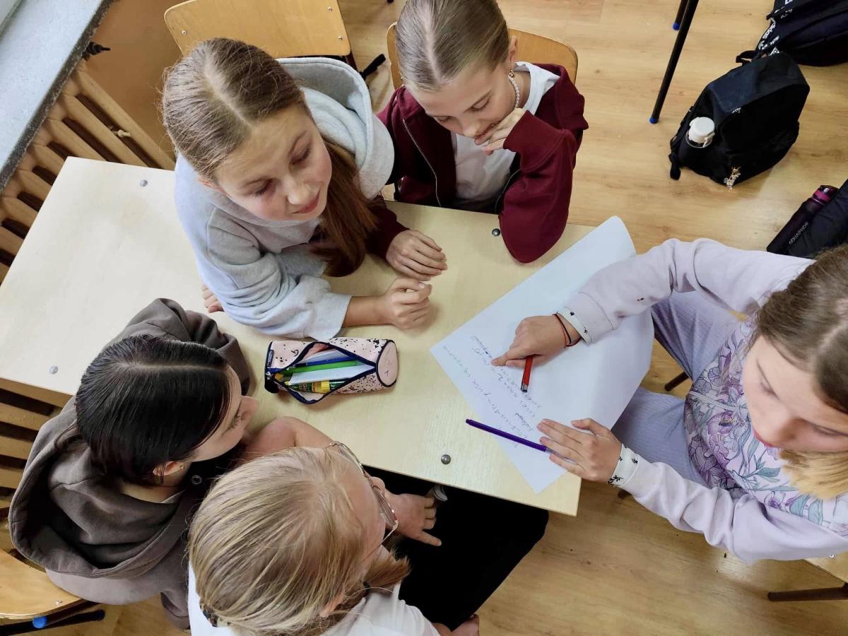 Uczniowie wykonali kilka ćwiczeń: część z nich napisała, dlaczego rodzina jest dla nich ważna, inni – którym łatwiej było wyrazić to w formie plastycznej – próbowali narysować swoje rodziny. Zajęcia zakończyły się wykonaniem plakatów przedstawiających skojarzenia ze słowem „Rodzina”. Uczniowie pracowali w grupach, a następnie przedstawiciele poszczególnych zespołów odczytali wyniki wspólnej pracy. - lekcja wychowawcza w klasie V pod hasłem „Nie hejtuję – nie dołuję”. Celem zajęć było uświadomienie uczniom, czym jest hejt i przemoc słowna, jakie mogą być ich konsekwencje oraz jak ważne są szacunek, empatia i odpowiedzialność za własne słowa – zarówno w kontaktach bezpośrednich, jak i w sieci.