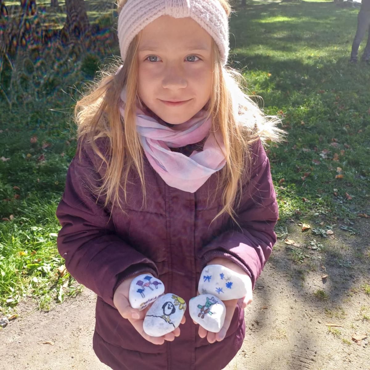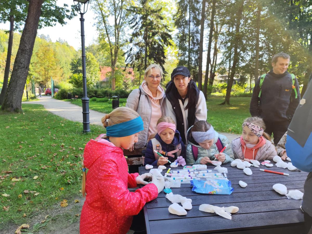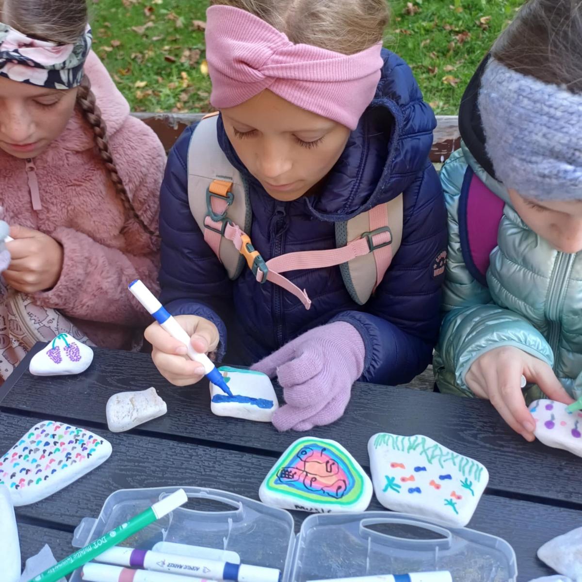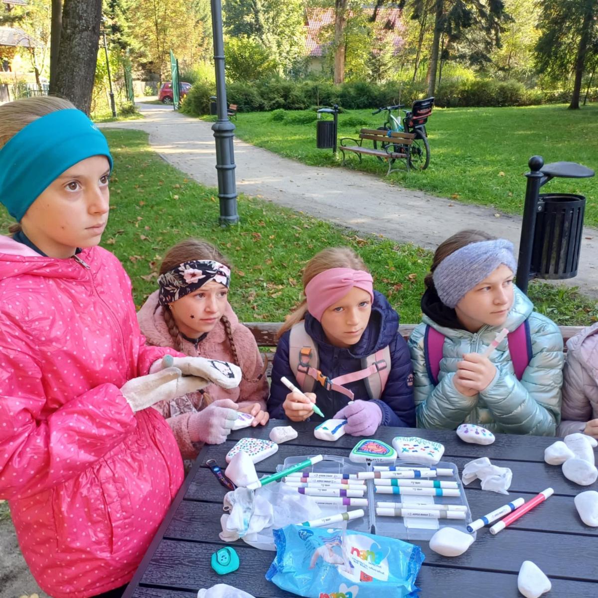 4 października 2025 r. odbył się kolejny zlot SKKT. Tym razem członkowie naszych szkolnych kół uczestniczyli w warsztatach malowania kamieni. Podziwiali także prace innych a następnie wybrane dzieła umieścili w nowo powstałym zakątku gdzie można zostawić swoje kamyczki a zabrać inne. Uczestnicy bardzo się zaangażowali bo malowanie to zajęcie które dostarcza wielu pozytywnych emocji a piękna jesienna pogoda to dodatkowy bonus dzisiejszych atrakcji. Na zakończenie wszyscy z apetytem zjedli kiełbaski i wymieniali się pomysłami na nowe prace. I tak zakończyliśmy dzisiejsze spotkanie.