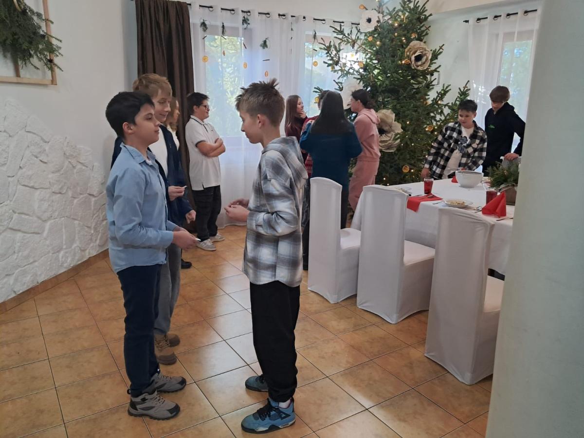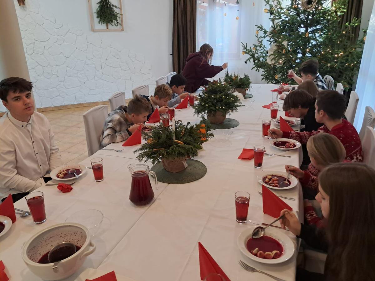Uczniowie klasy VII spędzili wyjątkowy, pełen magii czas podczas klasowej wigilii zorganizowanej w hotelu „Jan”w Szlachtowej. W rodzinnej atmosferze dzielili się opłatkiem, składali sobie życzenia i cieszyli wspólnymi chwilami, które przypomniały, jak ważna jest bliskość, życzliwość i wzajemne wsparcie.