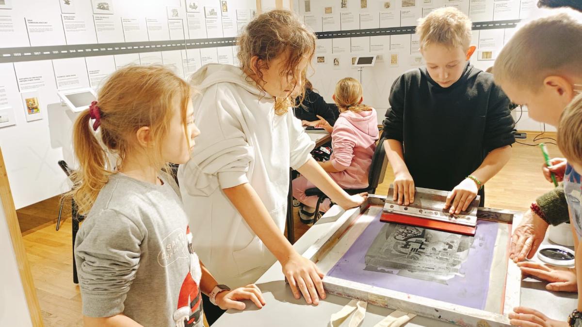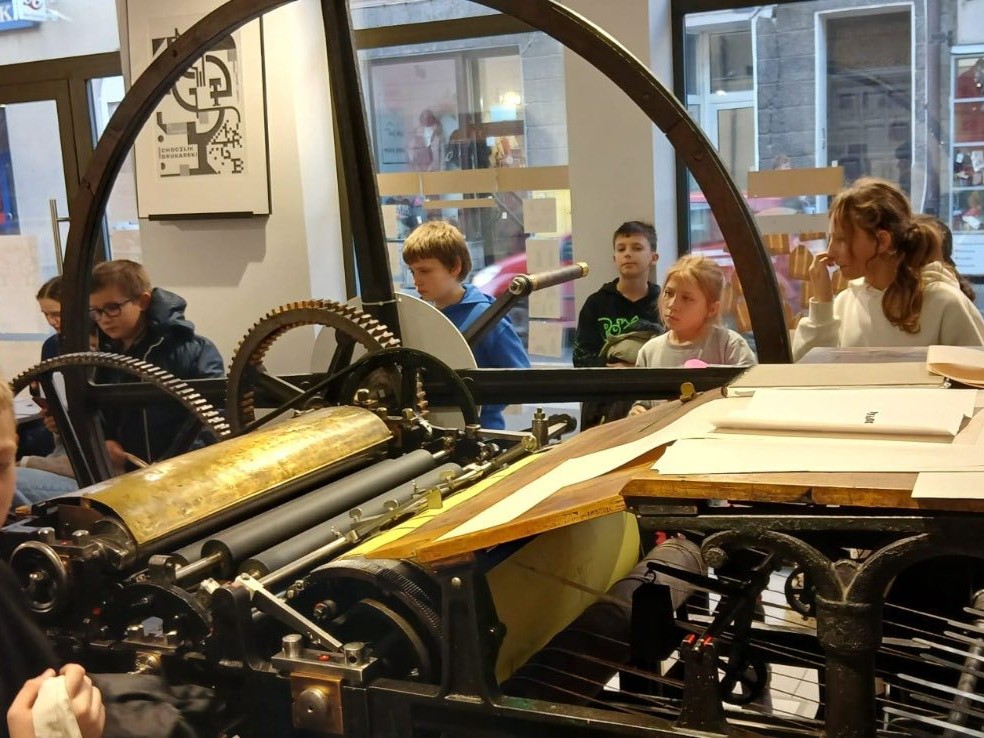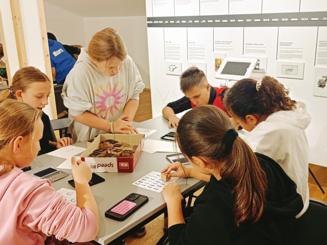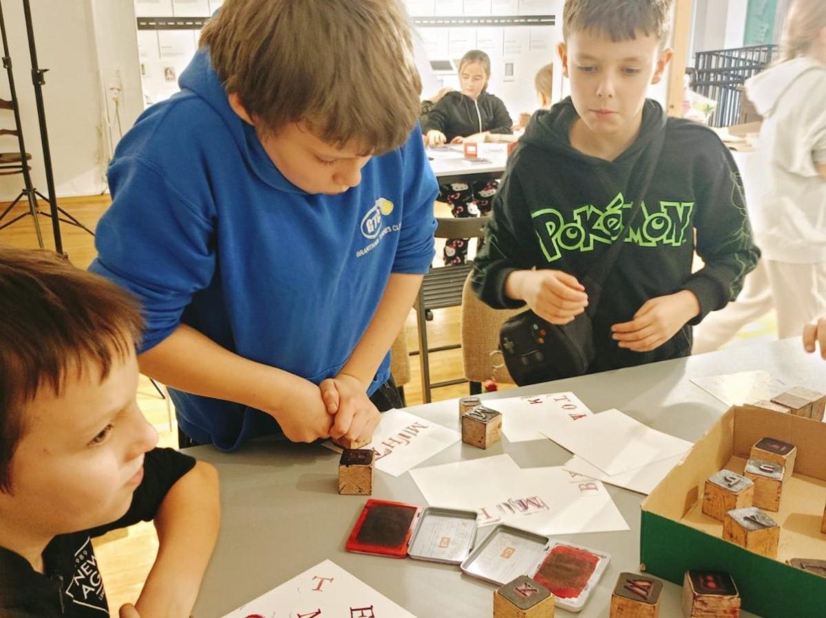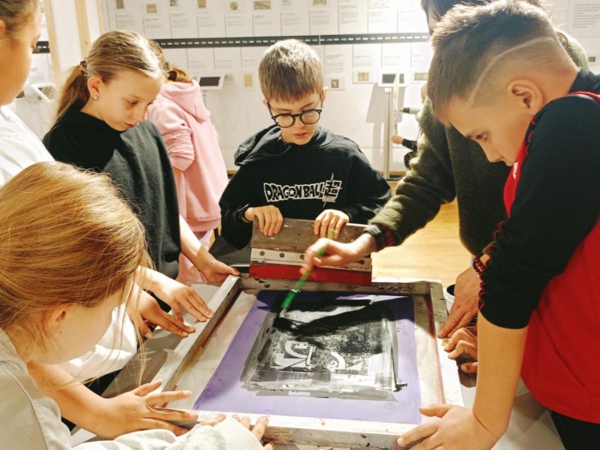 Następnie przenieśliśmy się w świat dawnych technik drukarskich. Podczas warsztatów każdy mógł spróbować swoich sił w sitodruku oraz pracy z czcionkami drukarskimi. Było twórczo, kreatywnie i bardzo ciekawie.