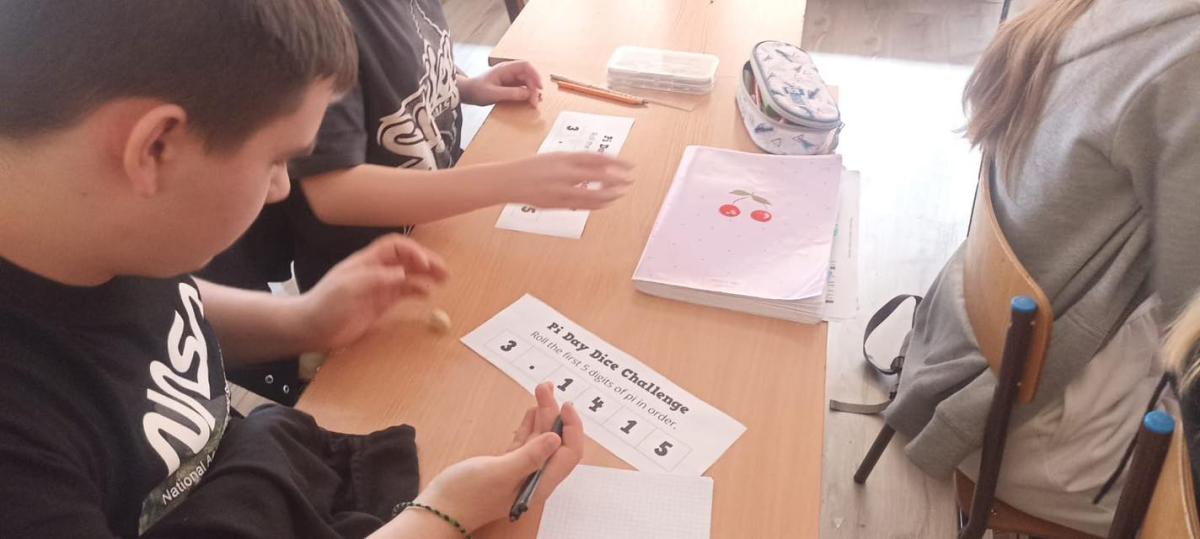Na lekcjach matematyki świętowaliśmy Dzień Liczby π. Uczniowie uczestniczyli w wielu ciekawych aktywnościach matematycznych i artystycznych. Mierzyli obwody oraz średnice, a następnie sprawdzali, że stosunek obwodu koła do jego średnicy jest zawsze zbliżony do liczby π. Dzięki temu mogli w praktyce zobaczyć, jak działa matematyka. Odnajdywali daty swoich urodzin w rozwinięciu dziesiętnym liczby π. Było to bardzo emocjonujące, ponieważ każdy z uczniów z ciekawością sprawdzał, czy jego data pojawia się w nieskończonym zapisie tej liczby. Uczniowie rozwijali także swoją kreatywność ozdabiali symbol π, rysowali miasto π na niebie, tworzyli spiralę kawałka liczby π. Nie obyło się bez konkursu kto najszybciej wyrzuci liczbę oczek odpowiadającą pierwszym pięciu cyfrom występującym w liczbie π.
