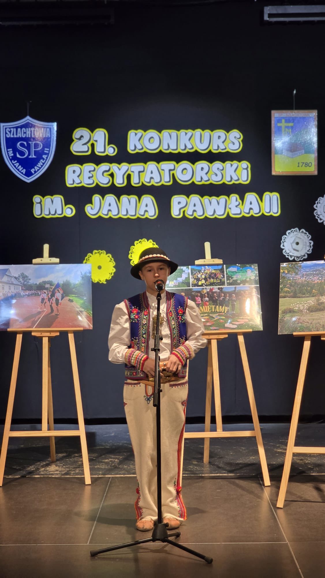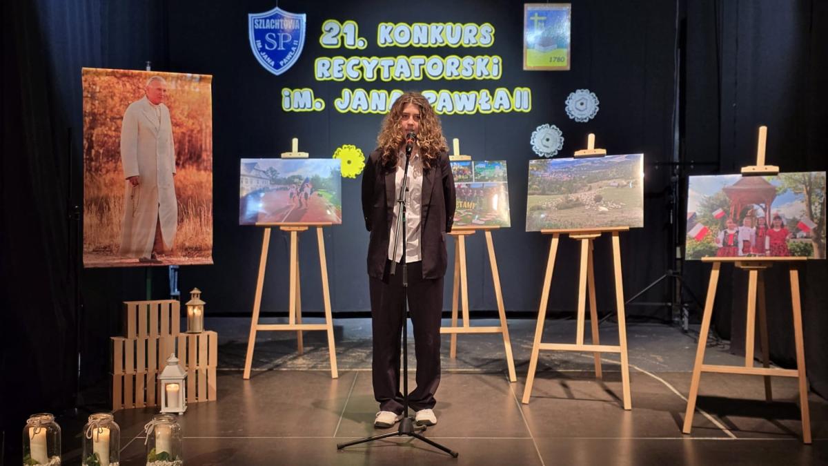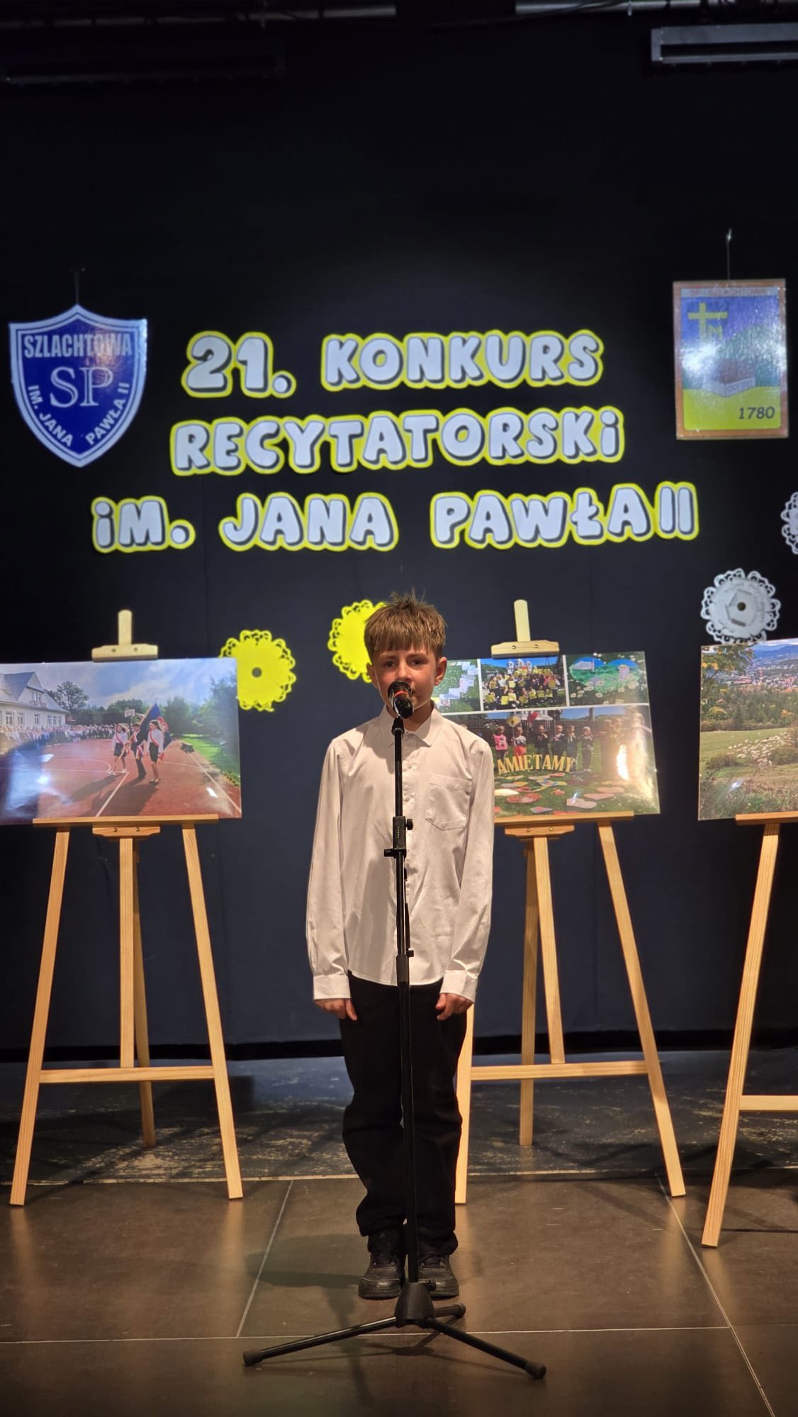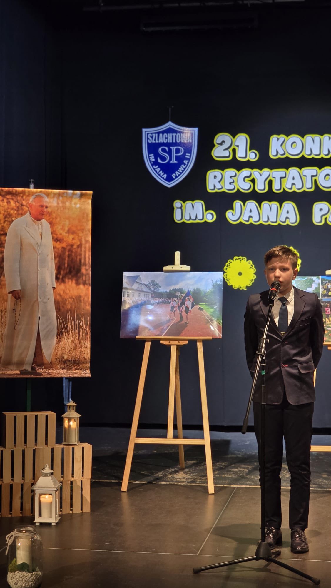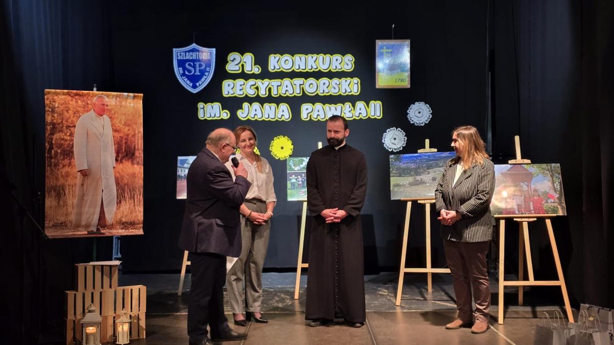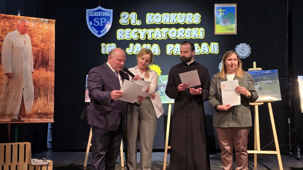 10 kwietnia 2026 r.nasz szkoła zaprosiła uczniów z okolicznych szkół do udziału w 21. edycji Konkursu Recytatorskiego im. Jana Pawła II. Tegoroczne motto nawiązuje do jednej z najważniejszych myśli Papieża Polaka — że człowiek rozwija się poprzez wysiłek, wytrwałość i odwagę w podejmowaniu kolejnych kroków. Jan Paweł II wielokrotnie podkreślał, że droga ku dobru i pięknu wymaga pracy nad sobą, a zdobywanie „szczytów” — tych życiowych i duchowych — jest zwycięstwem, które każdy nosi w sobie. Ta idea pięknie wybrzmiała w recytacjach uczestników.