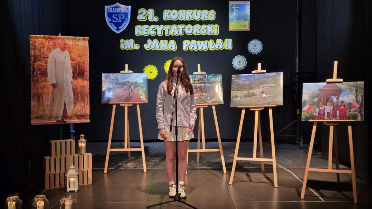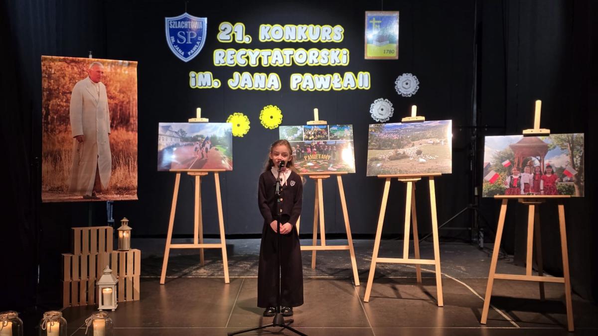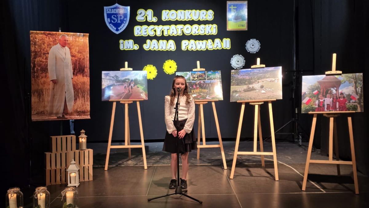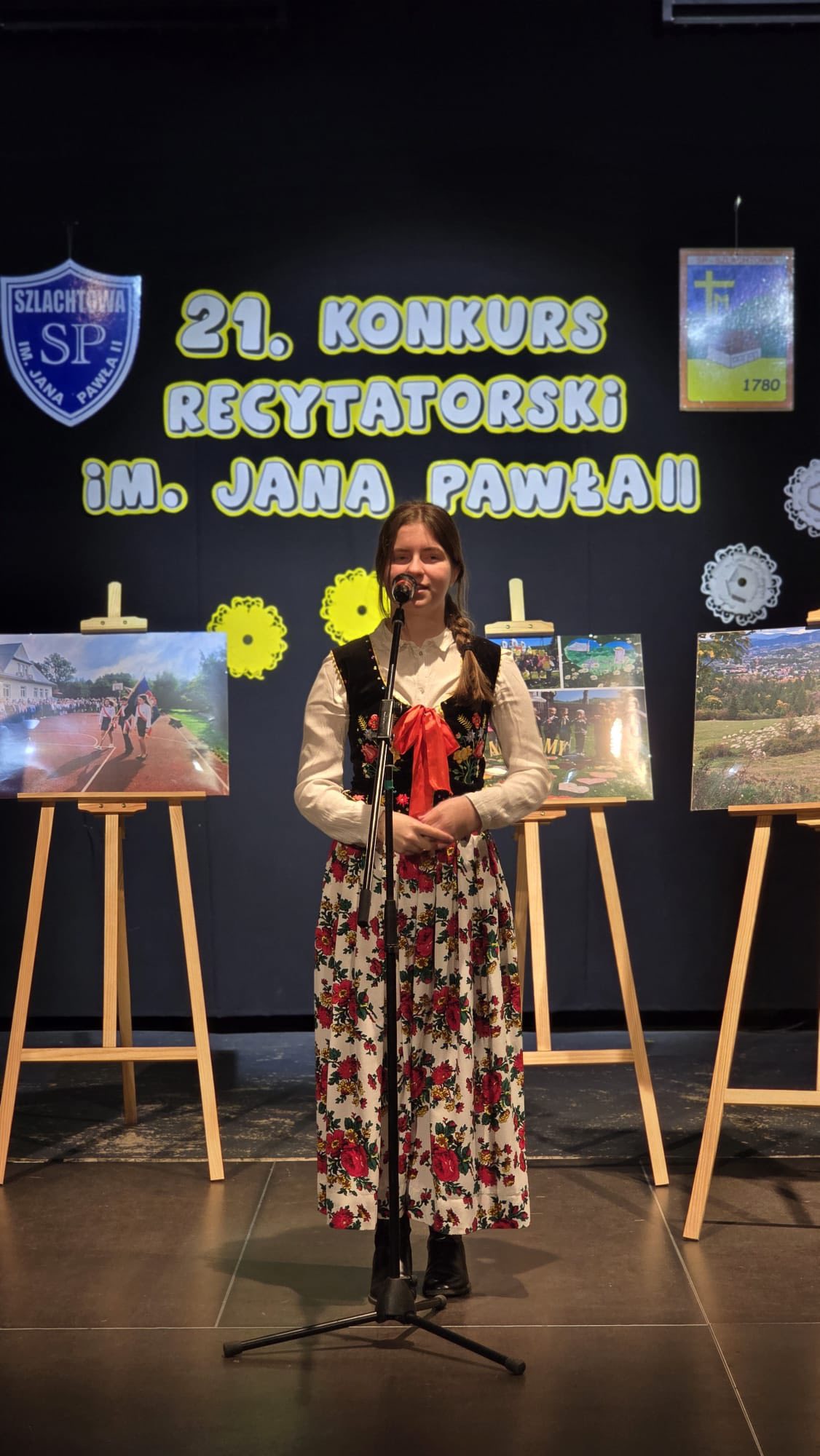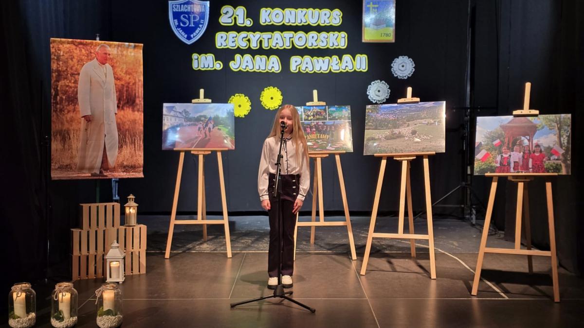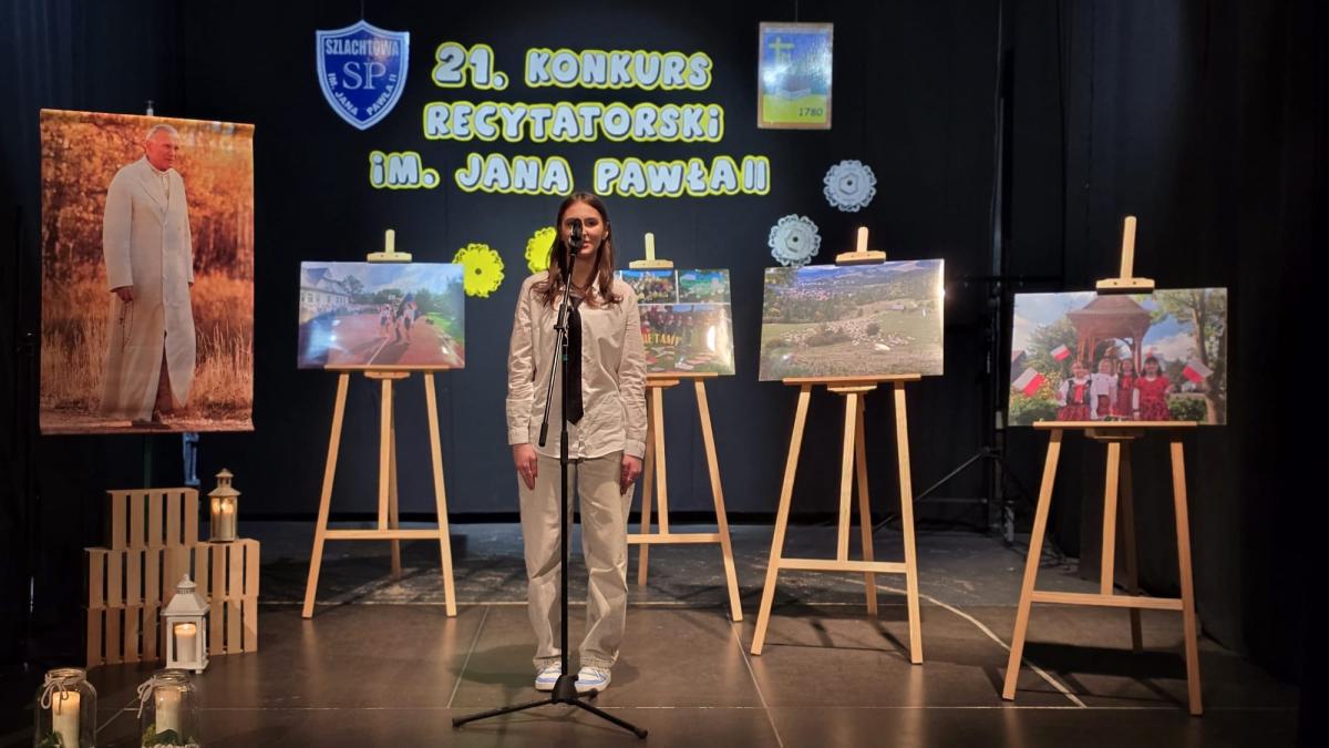 10 kwietnia 2026 r.nasz szkoła zaprosiła uczniów z okolicznych szkół do udziału w 21. edycji Konkursu Recytatorskiego im. Jana Pawła II. Tegoroczne motto nawiązuje do jednej z najważniejszych myśli Papieża Polaka — że człowiek rozwija się poprzez wysiłek, wytrwałość i odwagę w podejmowaniu kolejnych kroków. Jan Paweł II wielokrotnie podkreślał, że droga ku dobru i pięknu wymaga pracy nad sobą, a zdobywanie „szczytów” — tych życiowych i duchowych — jest zwycięstwem, które każdy nosi w sobie. Ta idea pięknie wybrzmiała w recytacjach uczestników.