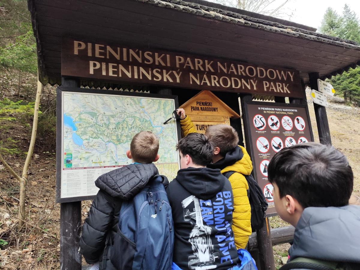 14 kwietnia uczniowie klasy VII udali się na zajęcia w terenie, prowadzone przez pracownika Pienińskiego Parku Narodowego - panią Patrycję J. Wędrując od Sromowiec Niżnych aż na szczyt Trzech Koron poznali zasady zwiedzania parku narodowego, przyswajali wiadomości na temat flory i fauny PPN, zwracali uwagę na różnorodność krajobrazu i ekosystemu łąkowego. Klasa wróciła trochę zmęczona, ale bogatsza w nową wiedzę i niezapomniane widoki. Dziękujemy pani Patrycji za przekazaną wiedzę i atrakcyjne zajęcia.