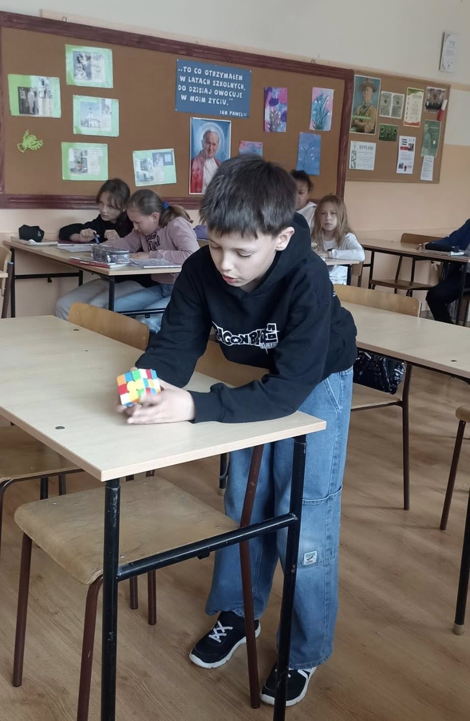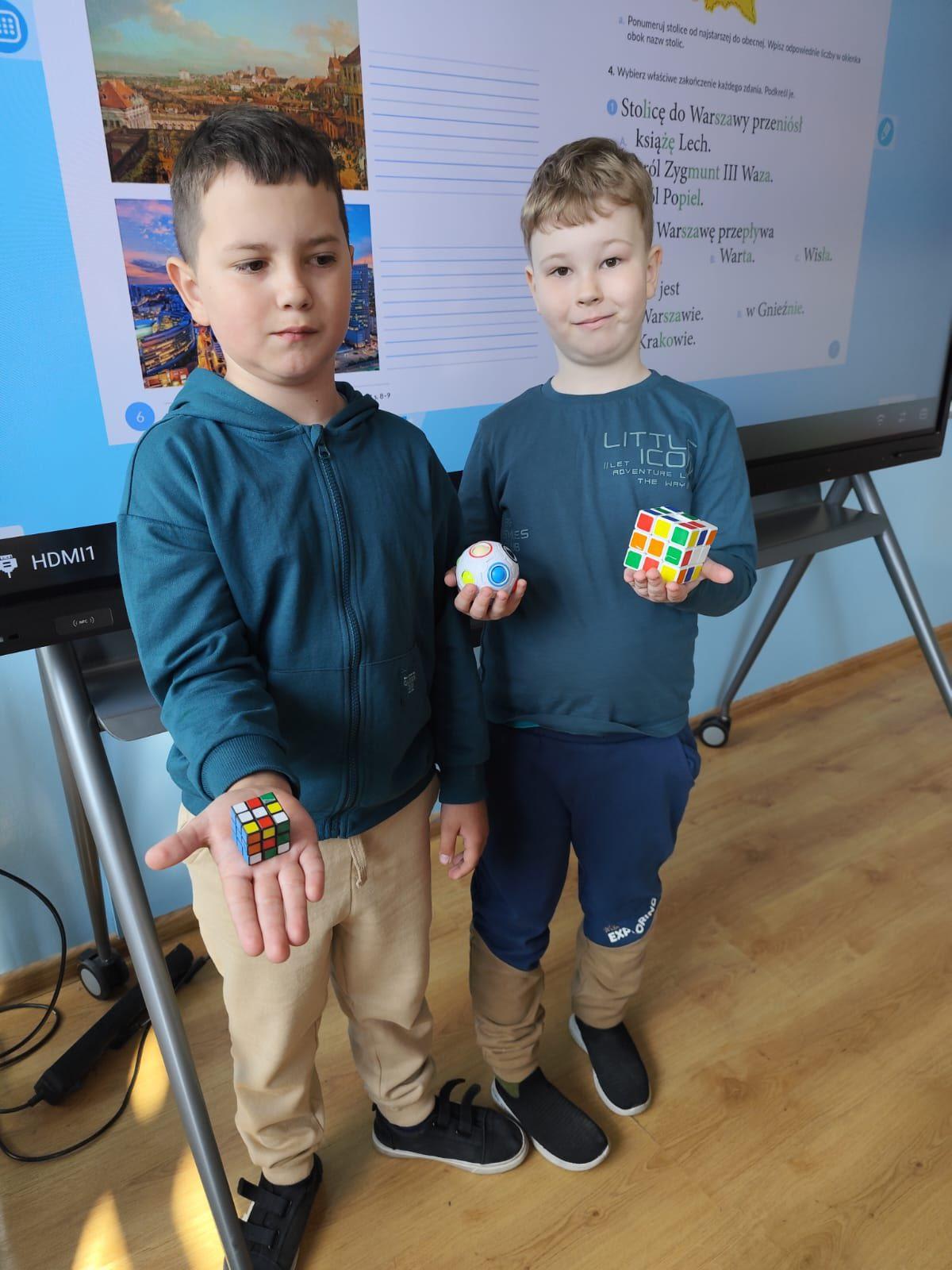 W naszej szkole obchodziliśmy Dzień Kostki Rubika,który przyciągnął uczniów zainteresowanych logicznymi łamigłówkami i kreatywnym myśleniem. Była to doskonała okazja, aby połączyć naukę z zabawą oraz rozwijać umiejętności koncentracji, cierpliwości i sprytu. Największe emocje wzbudziły zawody w szybkim układaniu kostki. Uczniowie rywalizowali ze sobą starając się osiągnąć jak najlepszy czas. Najlepiej poradzili sobie Kamil Lasyk z klasy 3 oraz Oliwia Ciesielka z klasy 6.Najszybciej jedną ściankę ułożyli Tymoteusz Habas z klasy 3 oraz Wiktor Komorek z klasy 7. Gratulujemy!